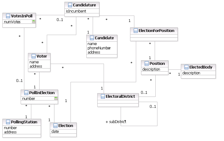class Advisor { name; id; int tel; 0..1 -- * Student; 1 -- * Office; 2 -- * Course; } class Student { name; } class Office { name; lazy address; } class Course { code; int numberOfStudents; description; Date startDate = "2020-12-26"; Time classTime = "12:59:59"; }